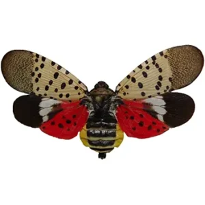 Lanternflies are planthoppers with distinctive wings. They are an invasive species that primarily feed on the sap of trees and plants, particularly grapevines, fruit trees, and hardwoods.